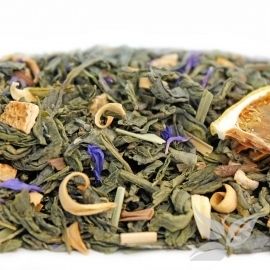 Зеленый китайский чай с добавлением лимонной травы, цедры лимона, лепестков василька и цветков апельсинового дерева, долек лимона и лайма. Свежий цитрусовый вкус этого чая - прекрасное средство от жажды. При заваривании дает настой светло-зеленого цвета, ароматный и освежающий.