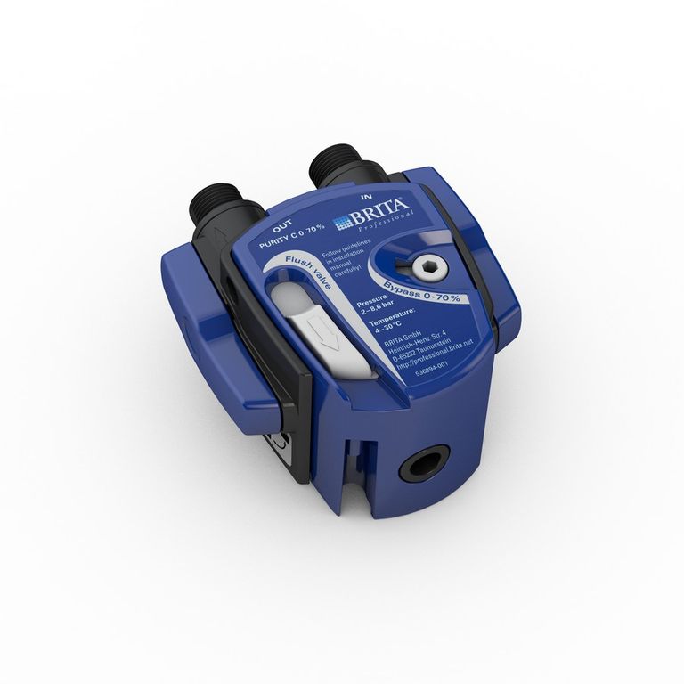 Головная часть фильтра с настраиваемым bypass 0-70% и слайдером используется совместно с фильтр-системой Brita PURITY C для фильтрации воды. Изделие особенно рекомендовано для кофемашин, индивидуальная настройка фильтра гарантирует, что при любом значении (°КН) холодной водопроводной воды на объекте монтажа фильтра значение (°КН) воды фильтрованной будет находиться в диапазоне 2,8-7°, что соответствует стандарту воды для кофе от Немецкой кофейной ассоциации (Deutcher Kaffee Verband) и Американской ассоциации деликатесного кофе (SCAA).